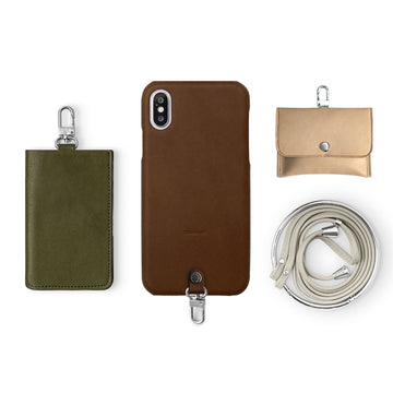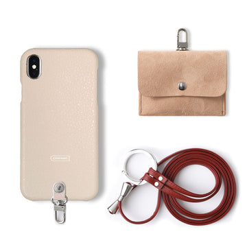 本革 3点セットA イヤホンケース(ゴート)&リングショルダーストラップ付き アドリアレザー 背面ケース