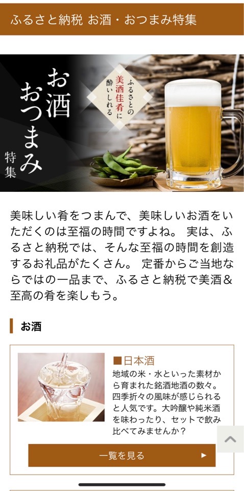 さとふる内の『お酒・おつまみ特集』です