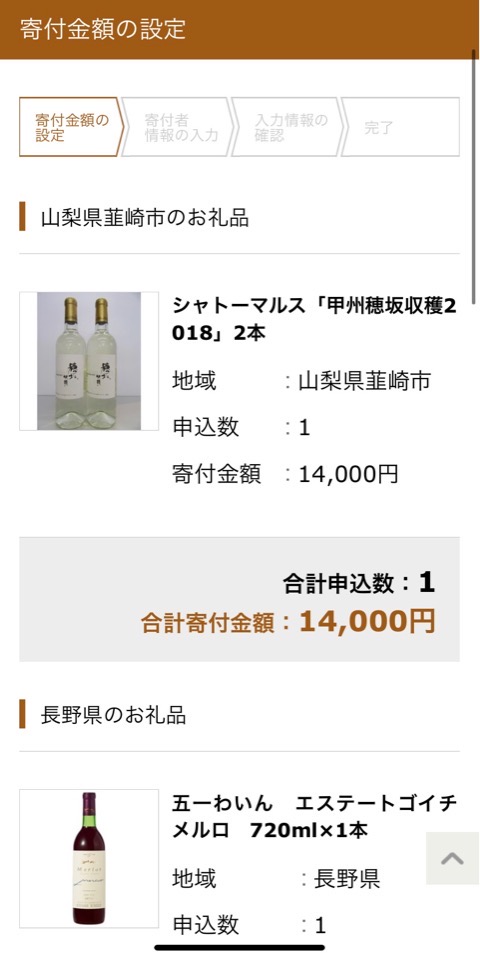 さとふるで日本ワインをカートに入れました。